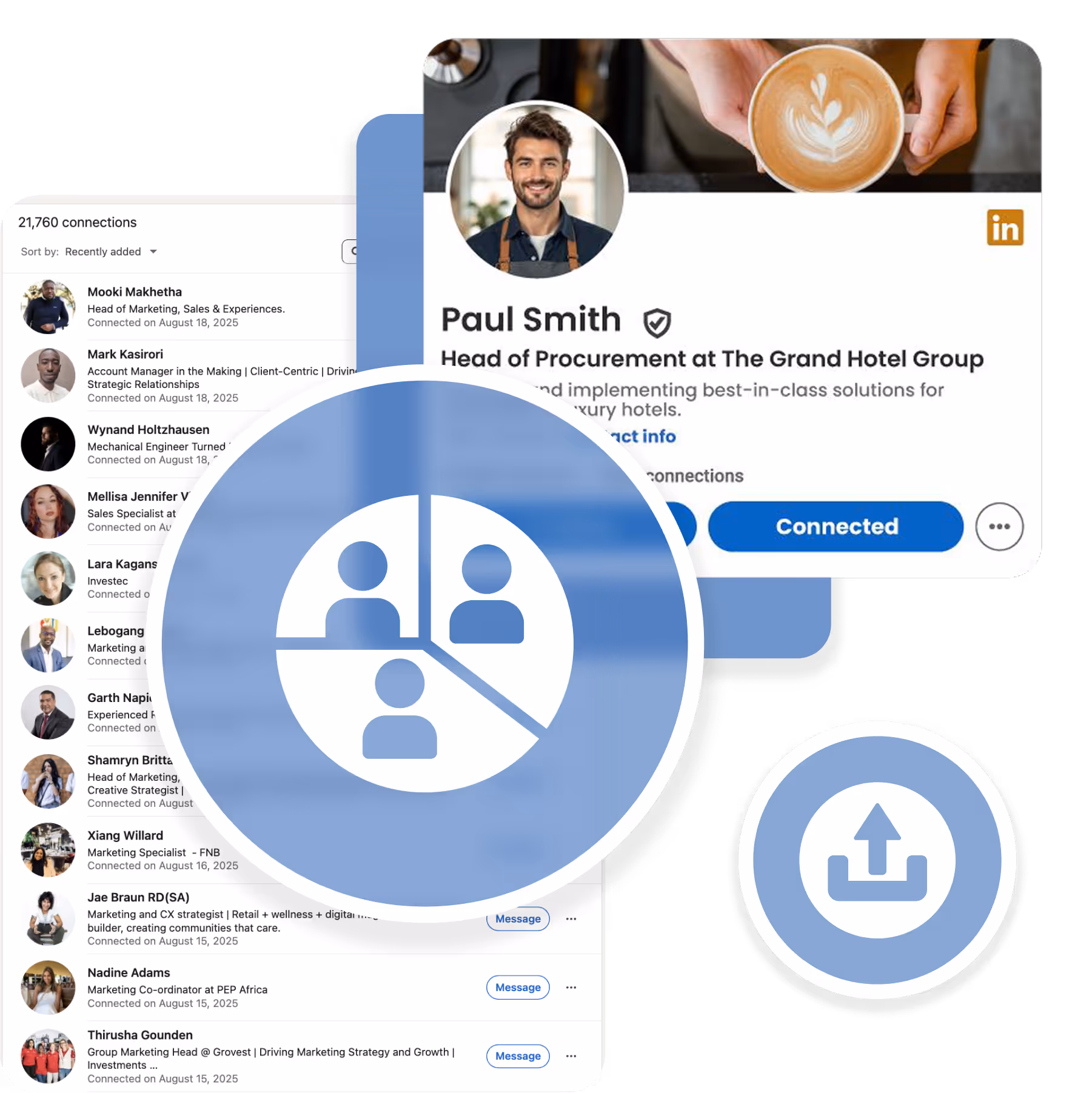 We access your LinkedIn account, export your connections, and segment them based on your ideal customer profile (e.g., industry, job title).